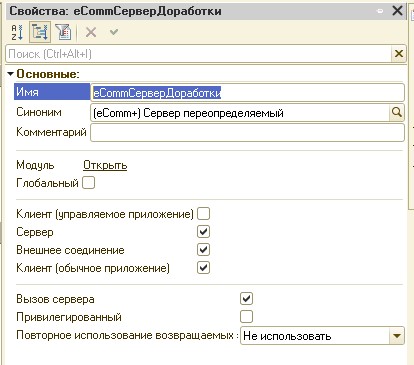 Разместим в общем модуле «eCommСерверДоработки» (необходимо добавить в случае отсутствия) код: