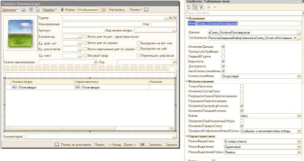 | Номенклатура | СправочникСсылка.Номенклатура | Истина |