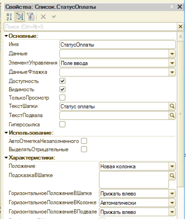 СтатусОплаты Поле ввода Статус оплаты Истина