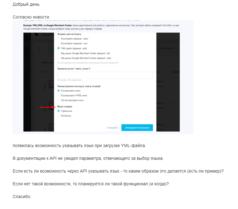попередня інформація, коли передача контенту тільки українською мовою через АРІ взагалі була неможливою