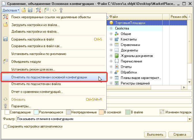 Перед объединением необходимо убедиться в том что новая конфигурация поставщика не перезатирает доработанный программный код переопределяемого модуля. Если такой код присутствует в методах - необходимо снять флажки с данных методов (или модуля) при объединении.
