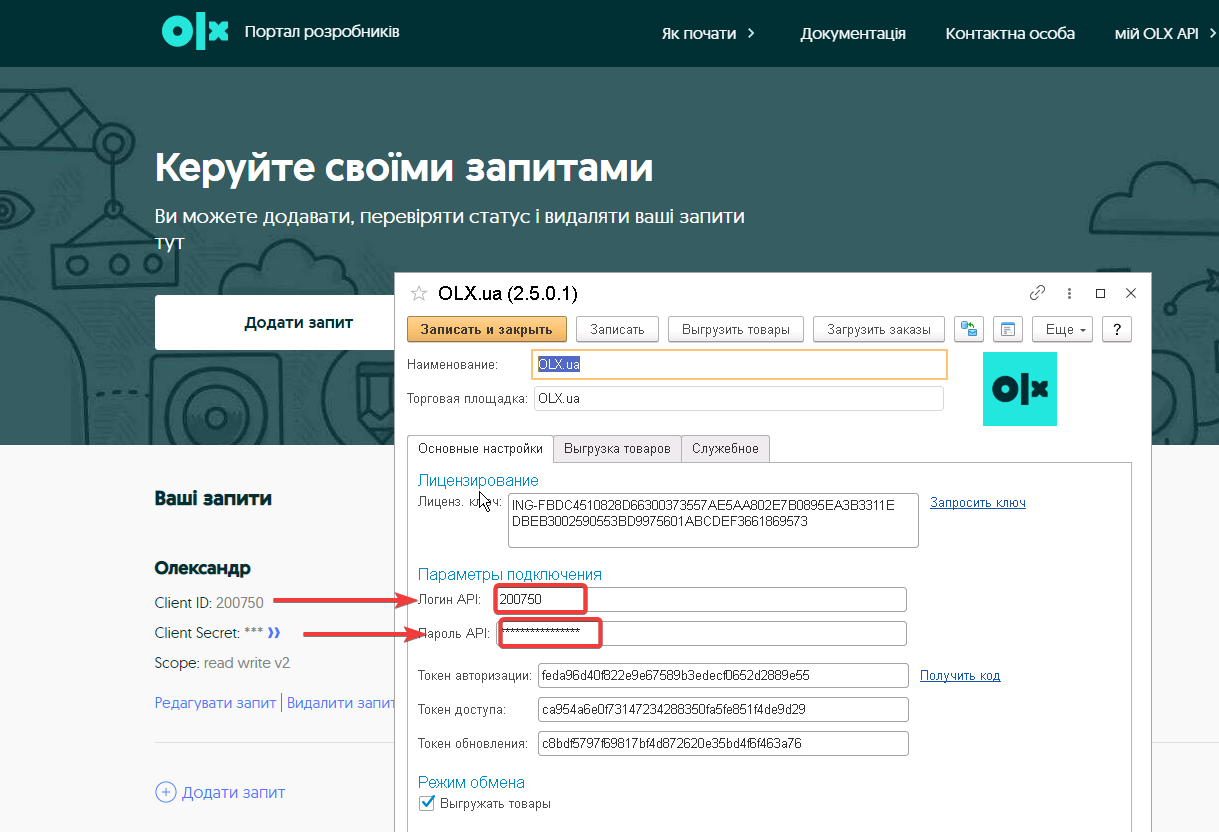 Далее необходимо авторизоваться на портале разработчиков: https://developer.olx.ua